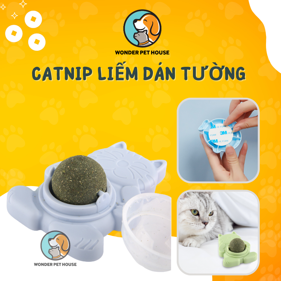 Viên Cỏ Bạc Hà Mèo, Catnip Dạng Xoay Gắn Tường Có Nắp Đậy Giúp Mèo Thư Giãn Tiêu Búi Lông